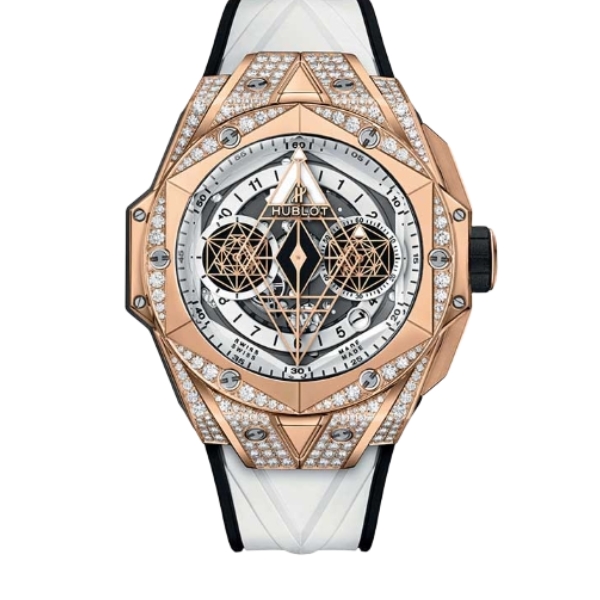 위블로 빅뱅 Sang Bleu 418.OX.2001.RX.1604.MXM20 45mm Rose Gold&Diamond White Rubber Strap Skeletonized White Dial[HB]
