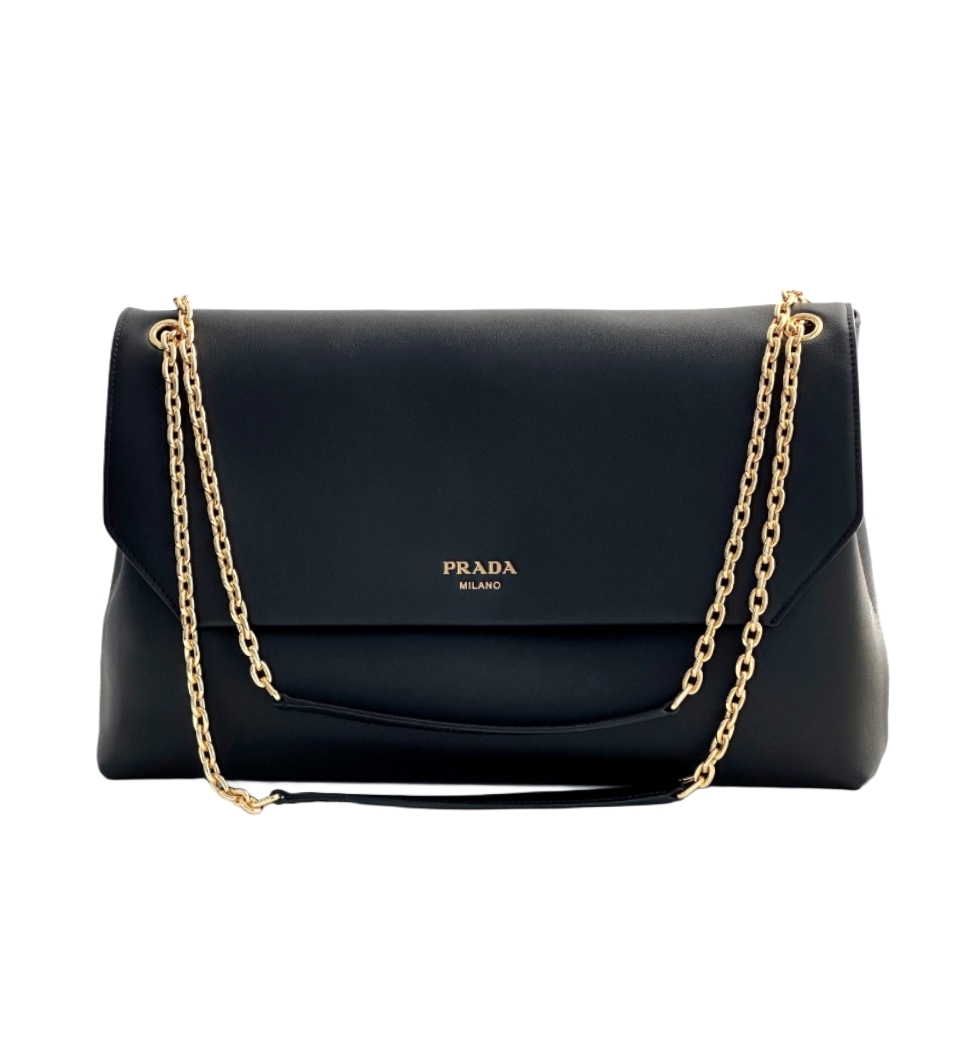 [prada/블랙프라임]플랩 체인 레더숄더백(블랙)